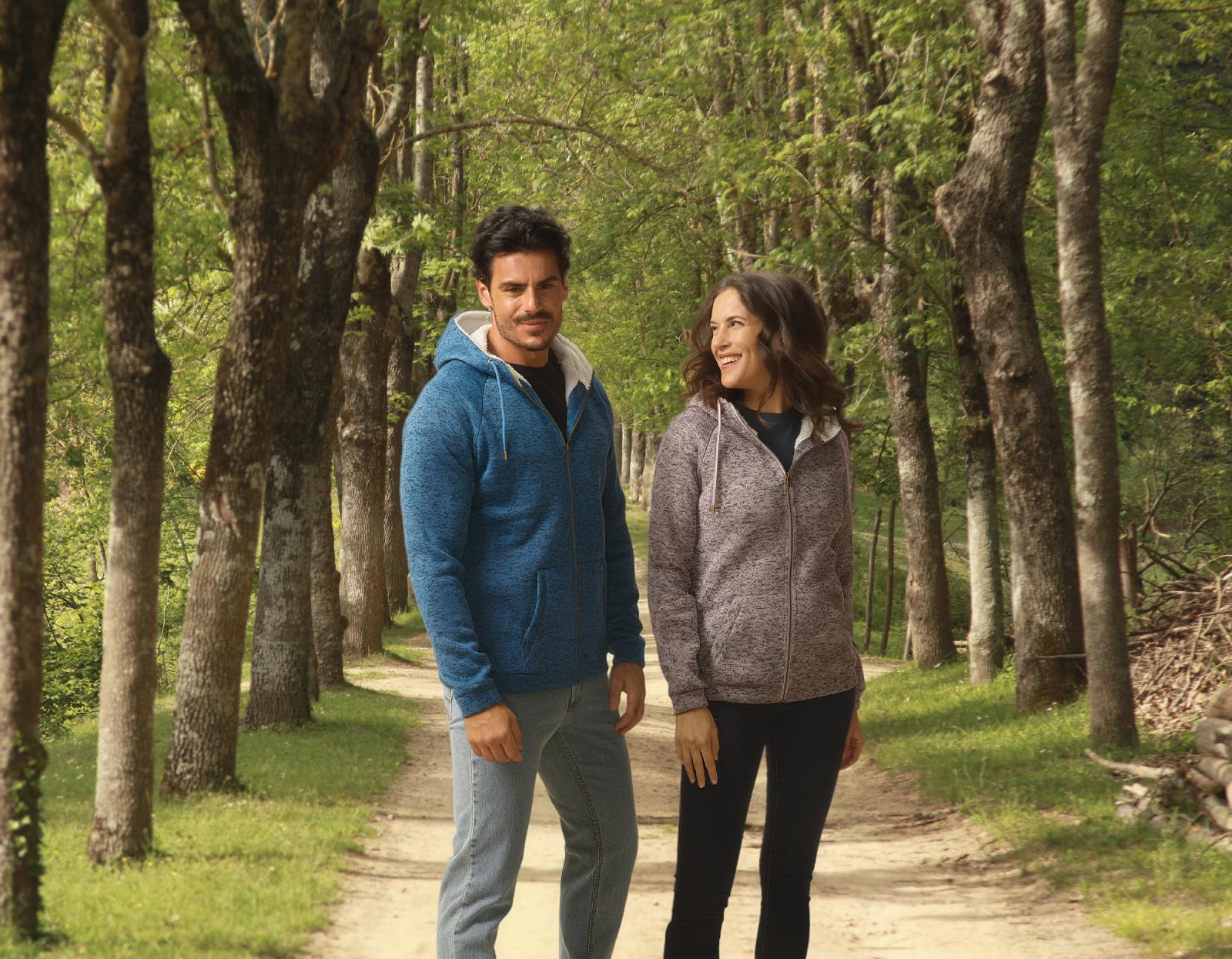 100 % poliester, s kapuco in žepi, velikosti S-XL.