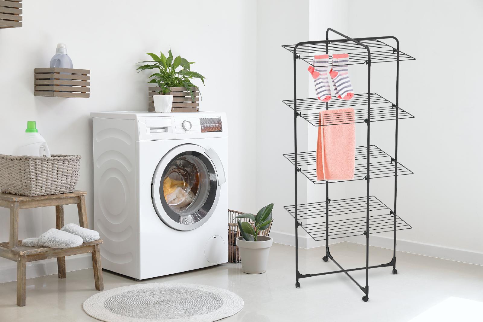Sušilna površina: 40 m, 4 zložljive police, s koleščki in jeklenimi žicami.