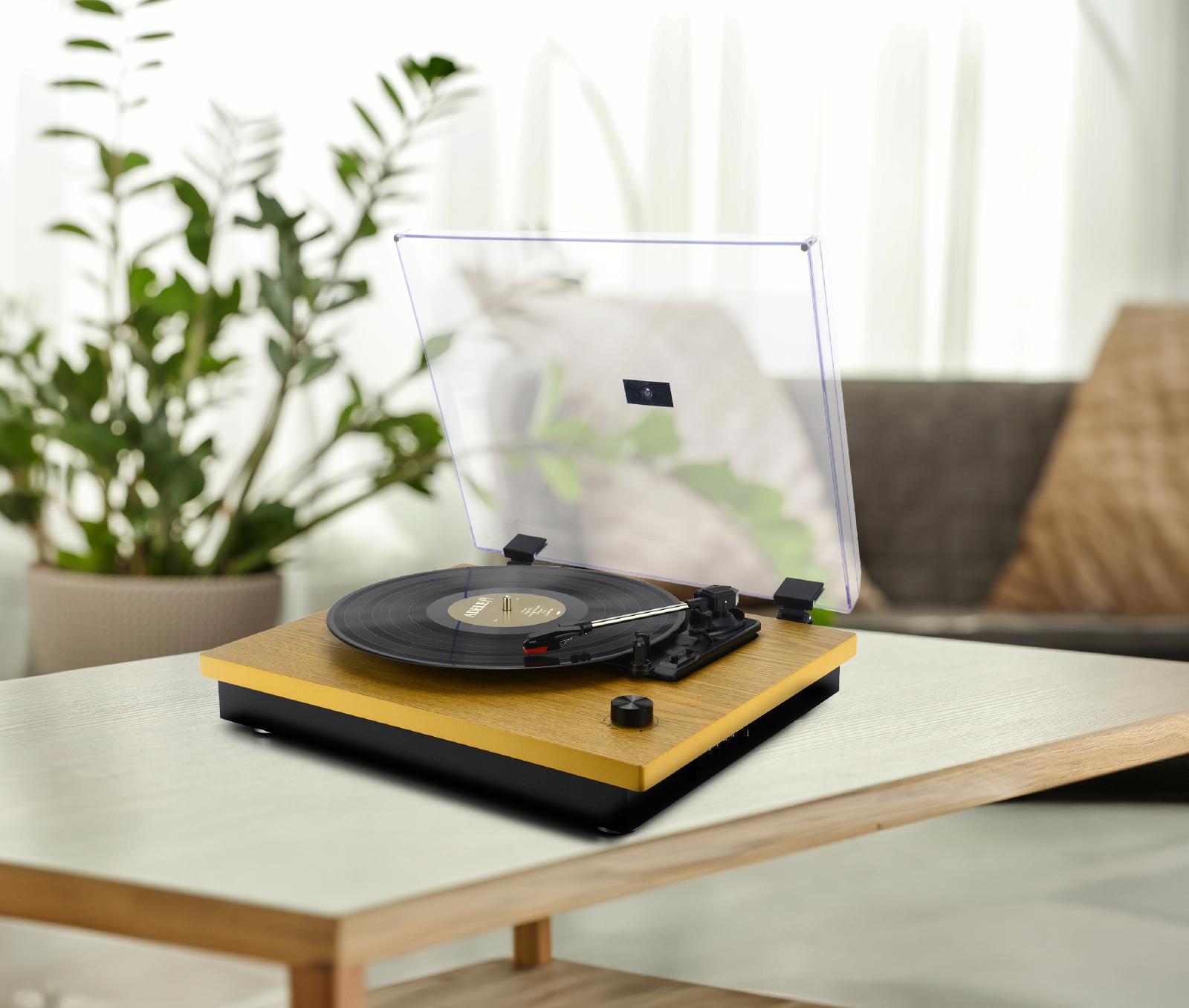 Vgrajena funkcija Autostop, tehnologija Wireless Audio V5.4, USB-priključek za predvajanje MP3 datotek, snemanje zvoka z vinila/Wireless Audio na USB-naprave, vgrajeni zvočniki, RCA izhod. Združljiv z zunanjimi zvočniki/slušalkami prek brezžičnega avdiosistema.